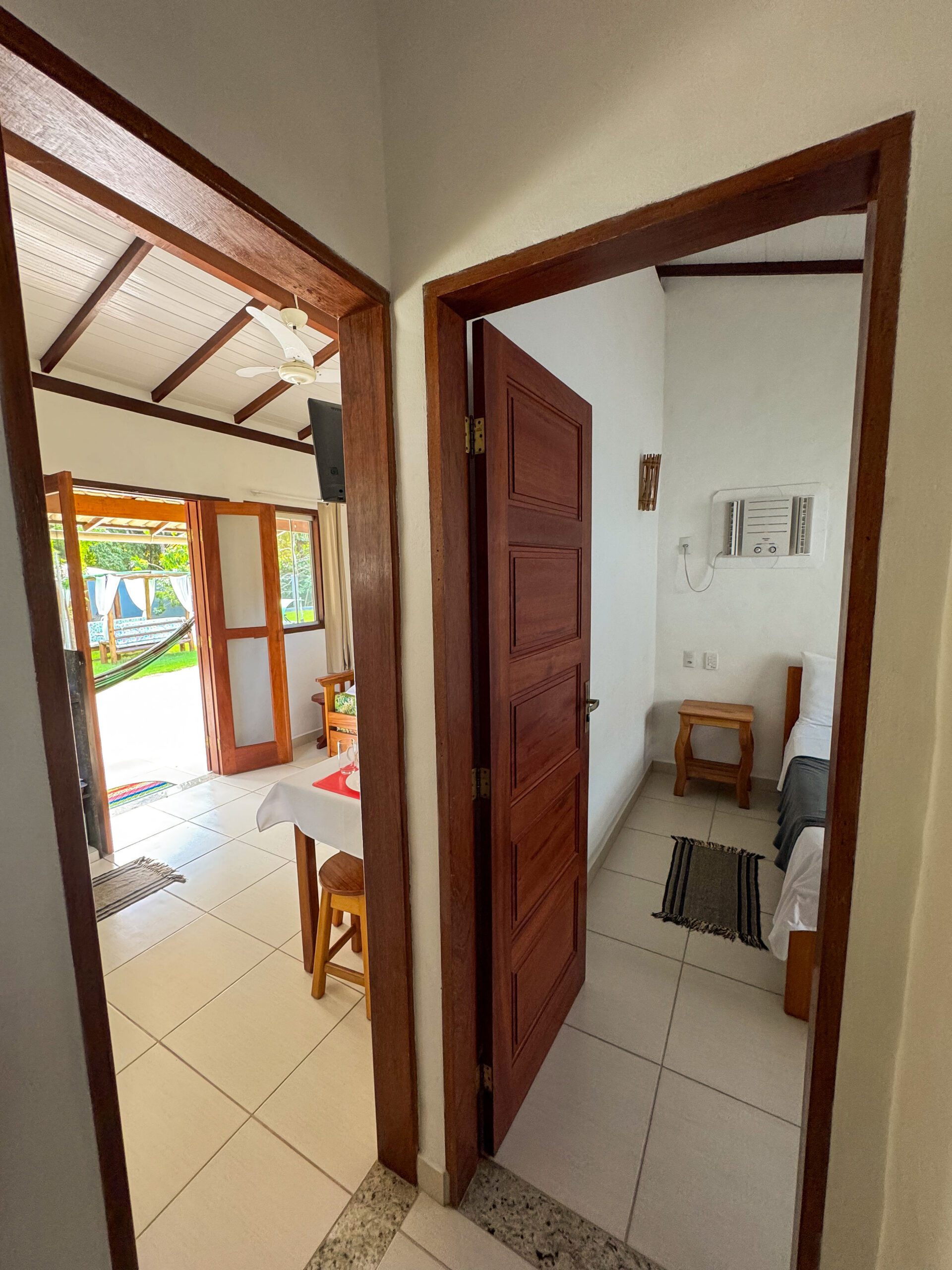 Acomoda confortavelmente até 4 pessoas, com um quarto equipado com cama de casal, ar condicionado para as noites quentes e ventilador de teto para uma brisa suave. A sala oferece uma prática bi-cama com colchões ortopédicos, garantindo um descanso de qualidade para mais dois hóspedes, além de um ventilador de teto.